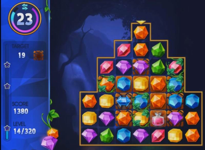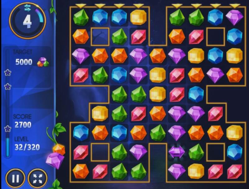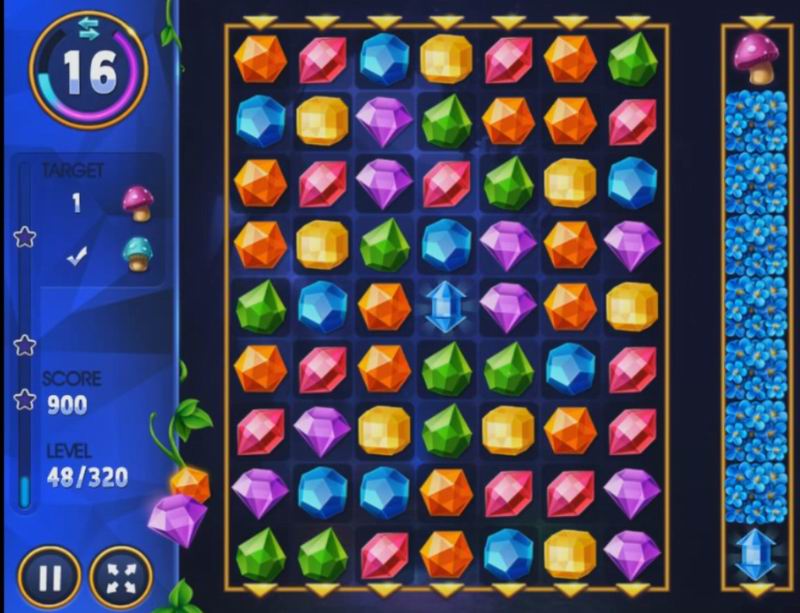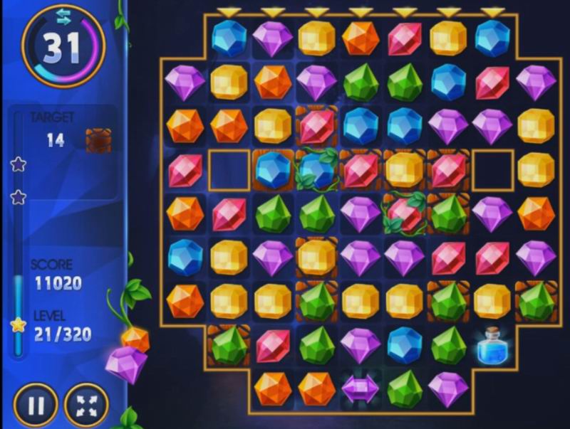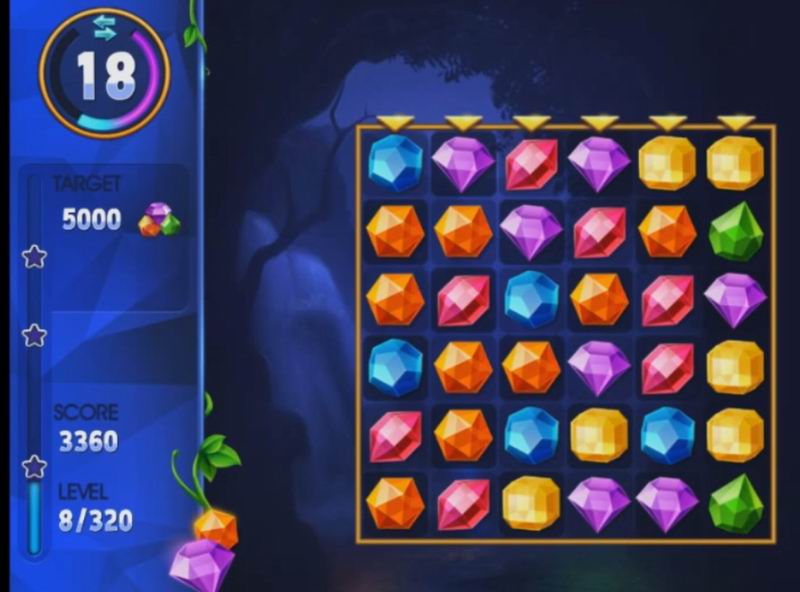 Am Anfang ist es ziemlich einfach: Sie müssen pro Aufgabe rund 2.000 Punkte erreichen. Wenn man auf der Bühne erfolgreich ist, steigen die Ansprüche, und das ist verständlich: Jeder will den Sieg erleben. Die Punkte erhöhen sich, wenn Sie mehr als einen Edelstein auf einmal entfernen. Sie können sie sowohl vertikal als auch horizontal ändern. Das Wichtigste ist, dass die Edelsteine nahe beieinander liegen müssen, sonst verliert man einen Zug, für den es keine Punkte gibt. Warum das Risiko eingehen, nicht wahr? Als Nächstes können Sie Ihre Gewinnchancen abschätzen, denn nach jedem Zug erhalten Sie Sternchen. Ihre Zahl hängt von Ihrer Entscheidungs- und Handlungsgeschwindigkeit ab.
